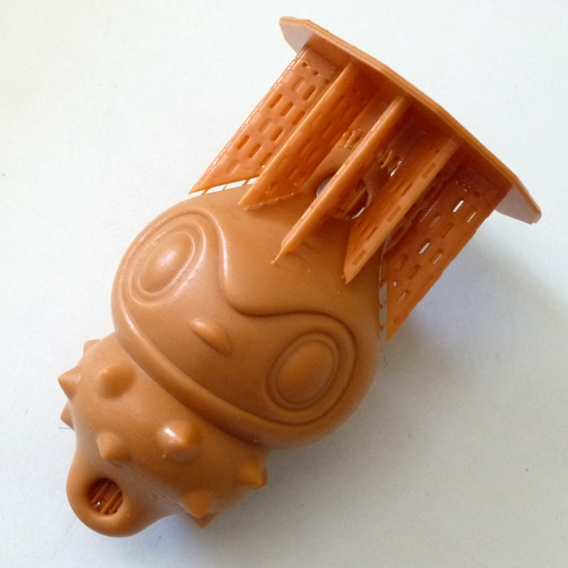 デジモデさんから出力がアップしてきた。サイズは7センチ弱くらい。ヒモの穴の中もサポートが入ってる。まずサポート材をきれいに取り除かねば。