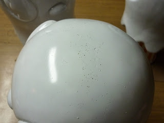 続き。2個を前後貼り合わせてるところ。シリコーン型に入れて貼り合わせる方式はやはり、合わせ目が合うかどうかわからないのが不安なのでやめた。レジンでも合わせ目合わないことあるし。やはり、合わせ目のパテや段差を整えるのに半日かかった。丸洗いしてサーキュレーターで乾かした。
