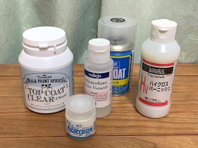 ・その他、試してみたいもの。パジコの「水性アクリルニス厚塗りツヤ出し」いいかも。DIY用の水性ニスなどまで範囲広げればいろいろありそう。以前「水性ウレタンニス」を試したことあるけど、特に硬いとは思わなかったけど、リキテックスにはどうなのか? ホルベインアクリラにスプレーバーニッシュあるのね。試してみたい。